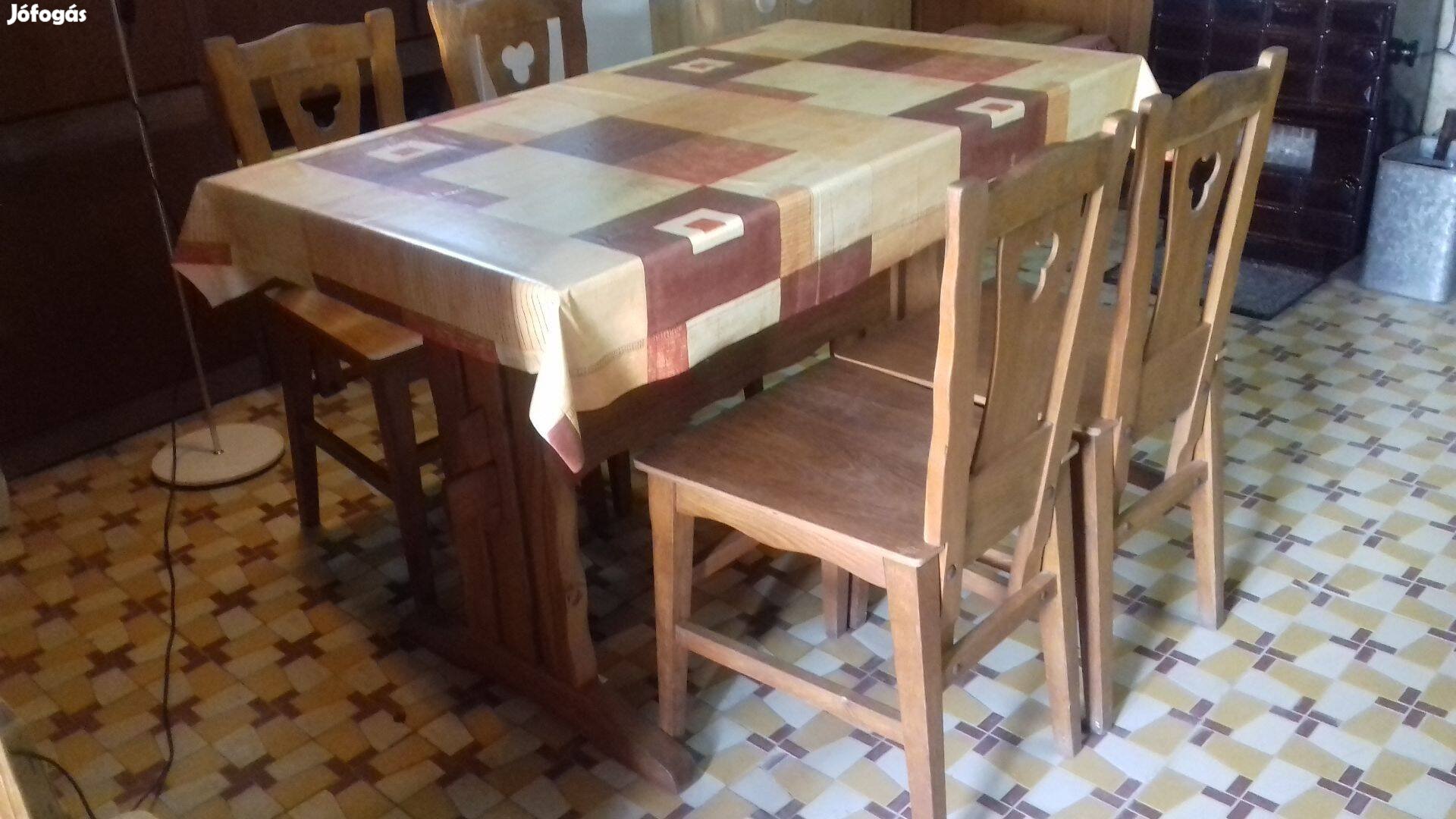 Asztal 6 db székkel tömörfa