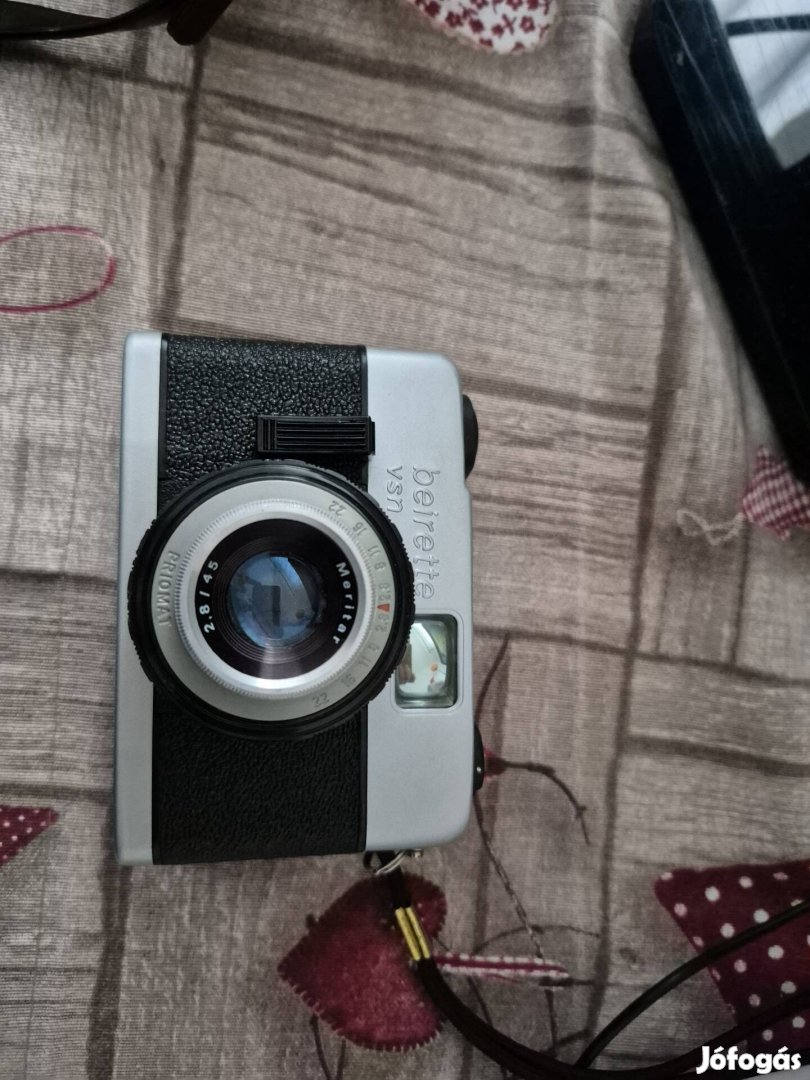 Beirette vsn hagyományos kisfilmes fényképezőgép tokjában tárolt.