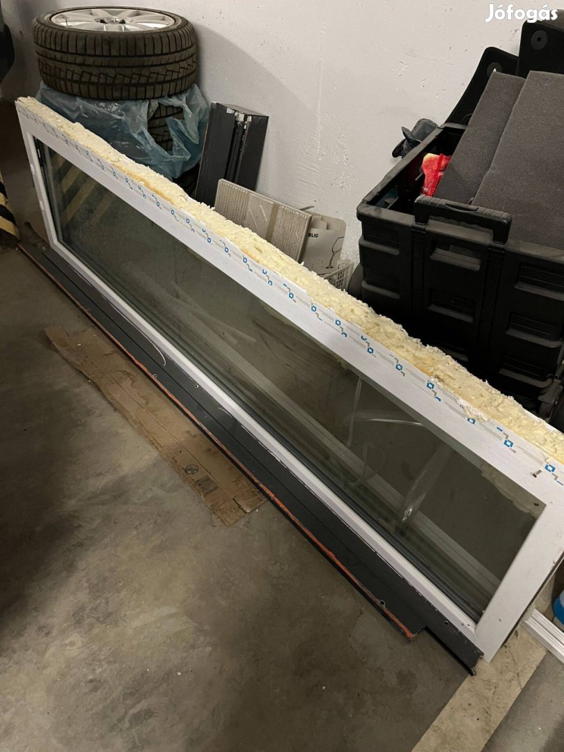 Jó állapotban lévő bontott terasz ablak 3 rétegű üveggel, egy-egy oldalsó toldalék elemmel, antracit színű alumínium redőny + tok + sín + cséve.