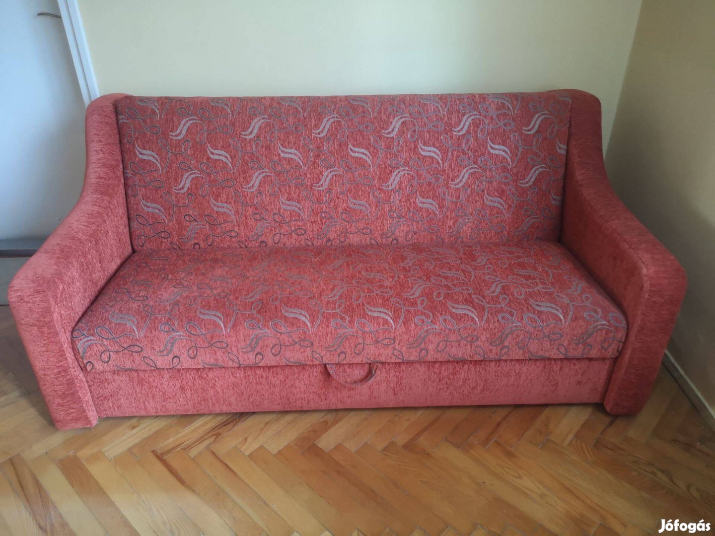 Eladó egy alig használt rugózatú, jó állapotban lévő, kihúzhatós, ágyneműtartós ágy két db kerekes fotellel. Erős, tartós, nem kopott, bordó színű, szövet huzattal. Összecsukott állapotban 185cm széles, alaphelyzetben 110cm, kihúzva 210cm mély.