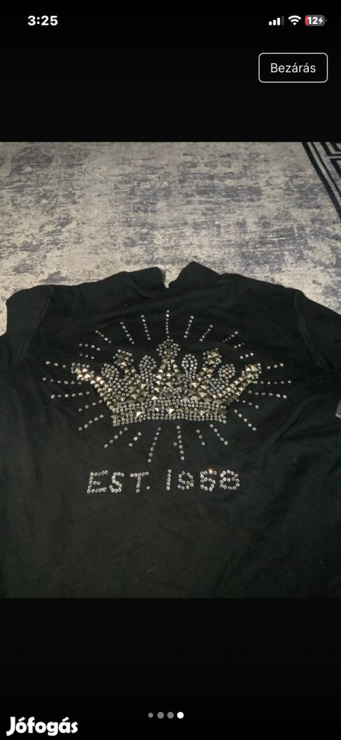 Fekete színű, strasszos mintával elöl és hátul, nagyon látványos, ikonikus Y2K darab.