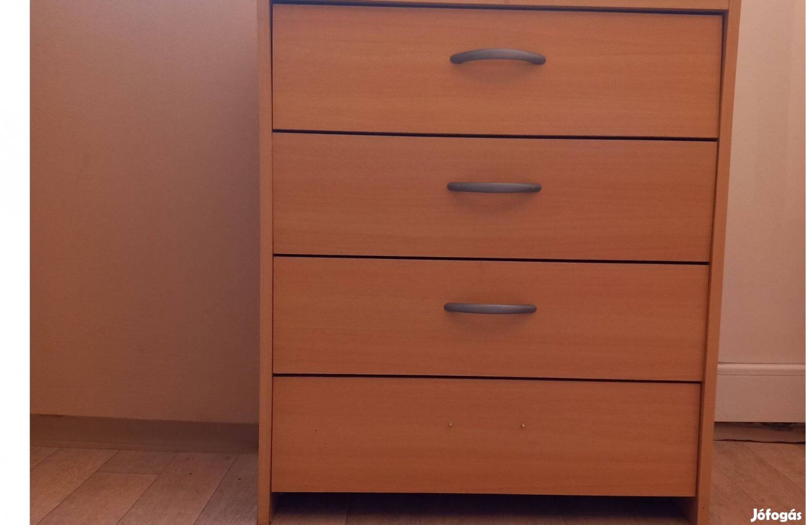 Natúr szekrény lefelé nyíló ajtókkal. Alsó fogantyúja hiányzik, tetején kis szépséghibával, mely a 4. képen látható.