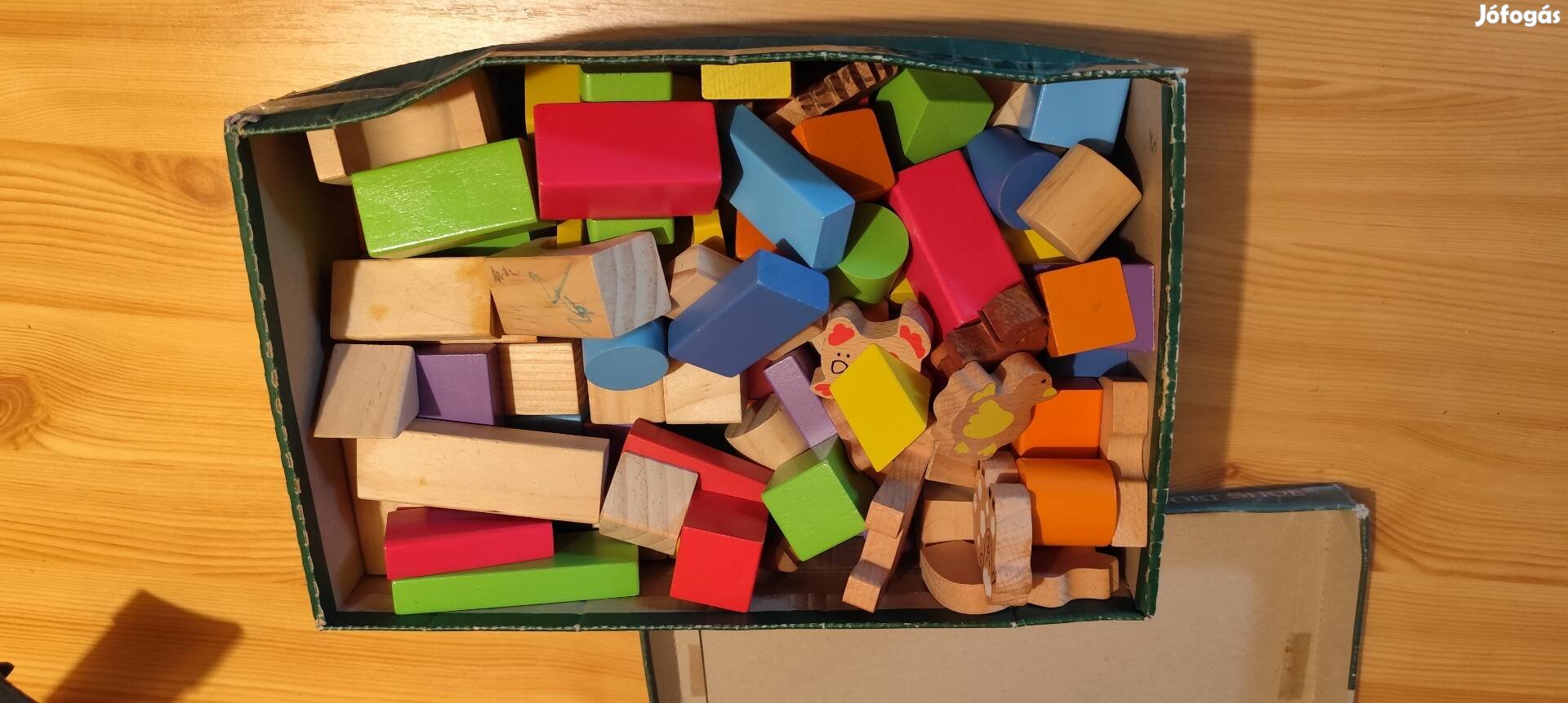 Fa építő játék, állat figurákkal.