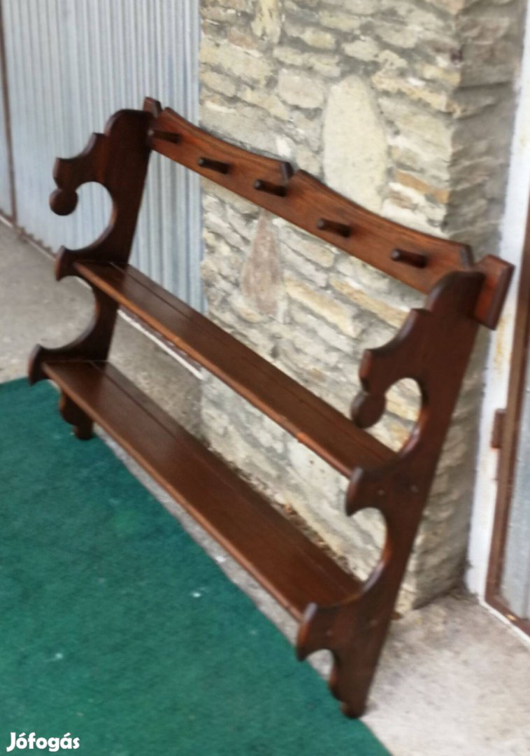 Fából készült falra szerelhető polc, barnára pácolva eladó a képen látható állapotban.