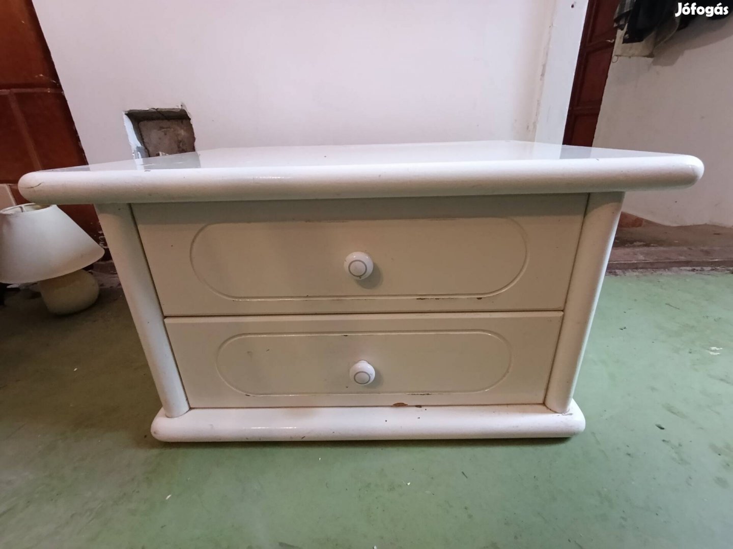 Fehér éjjeliszekrény kis sérüléssel a tetején eladó.