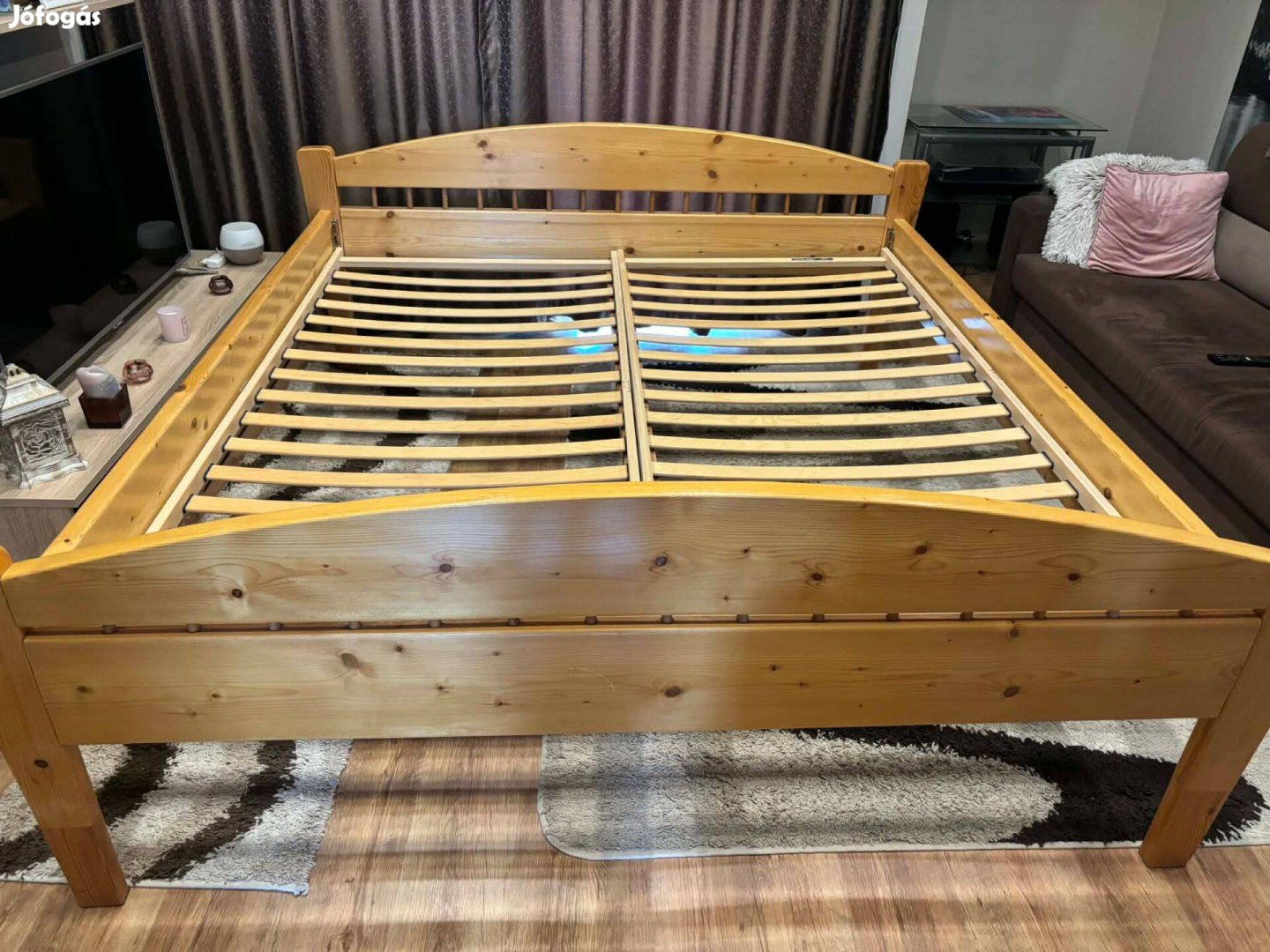 Eladó a képeken látható 180x200-as fenyő ágykeret matraccal.