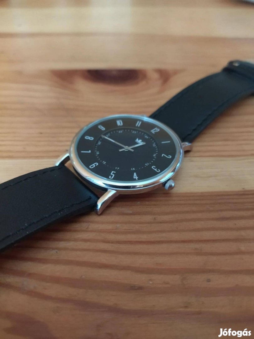 Eladó a képeken látható, elegáns megjelenésű férfi karóra, szép, megkímélt állapotban. Letisztult fekete számlap, jól olvasható számokkal és 24 órás belső skálával.