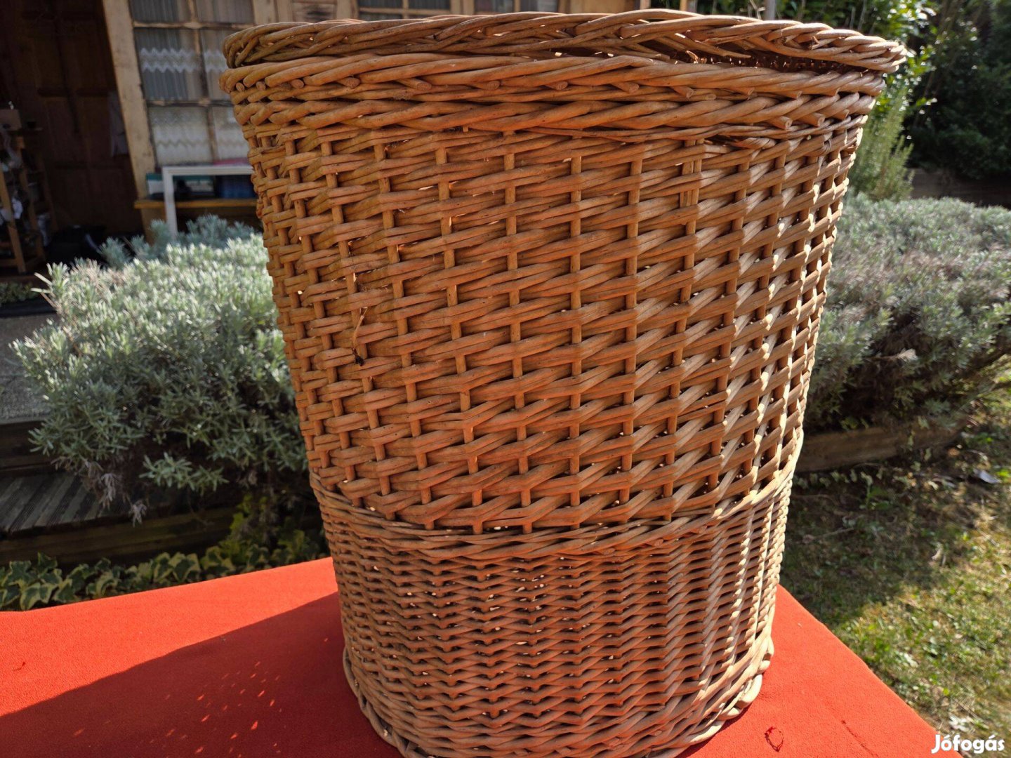 Eladó a képen látható hibátlan állapotú fedeles, fonott tároló. 58x54 cm