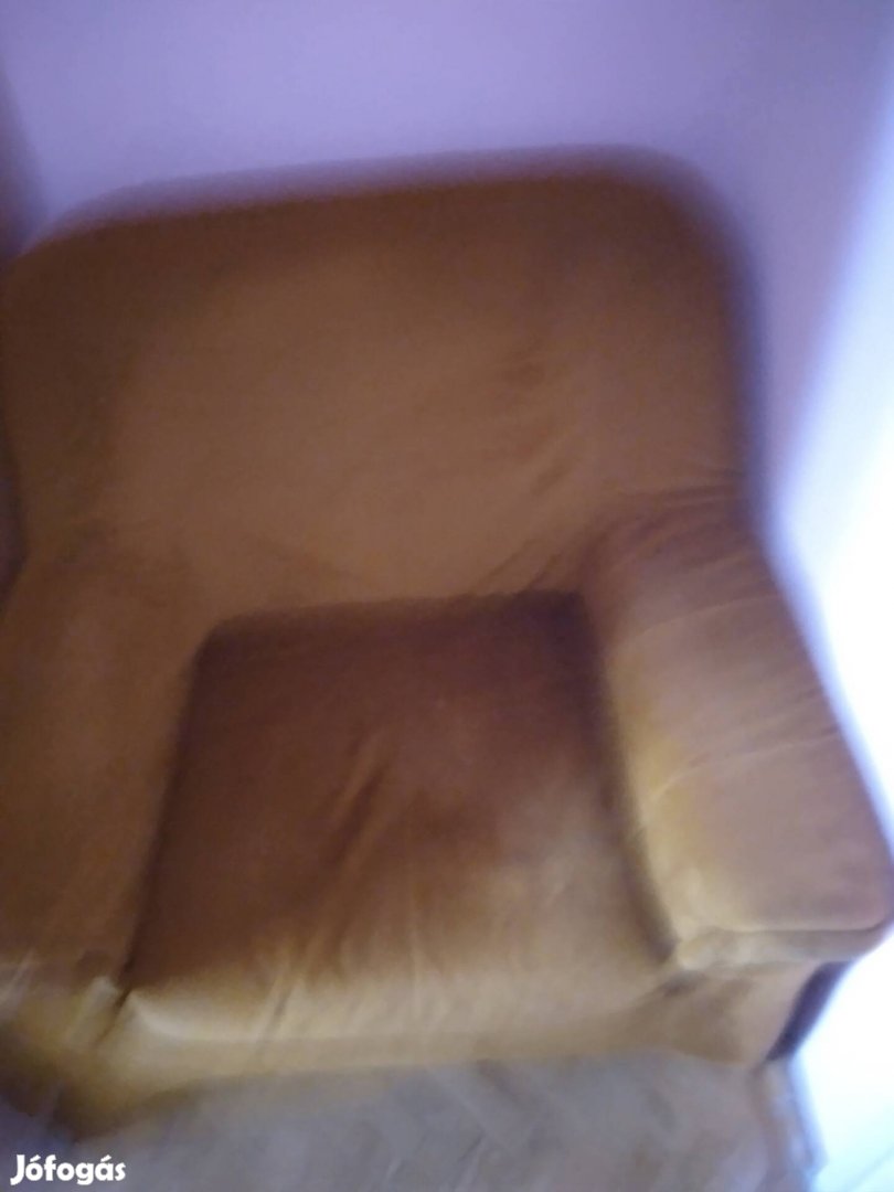 mustársárga színű ágyneműtartós francia ágy és 2 db fotel eladó Zalaegerszegen