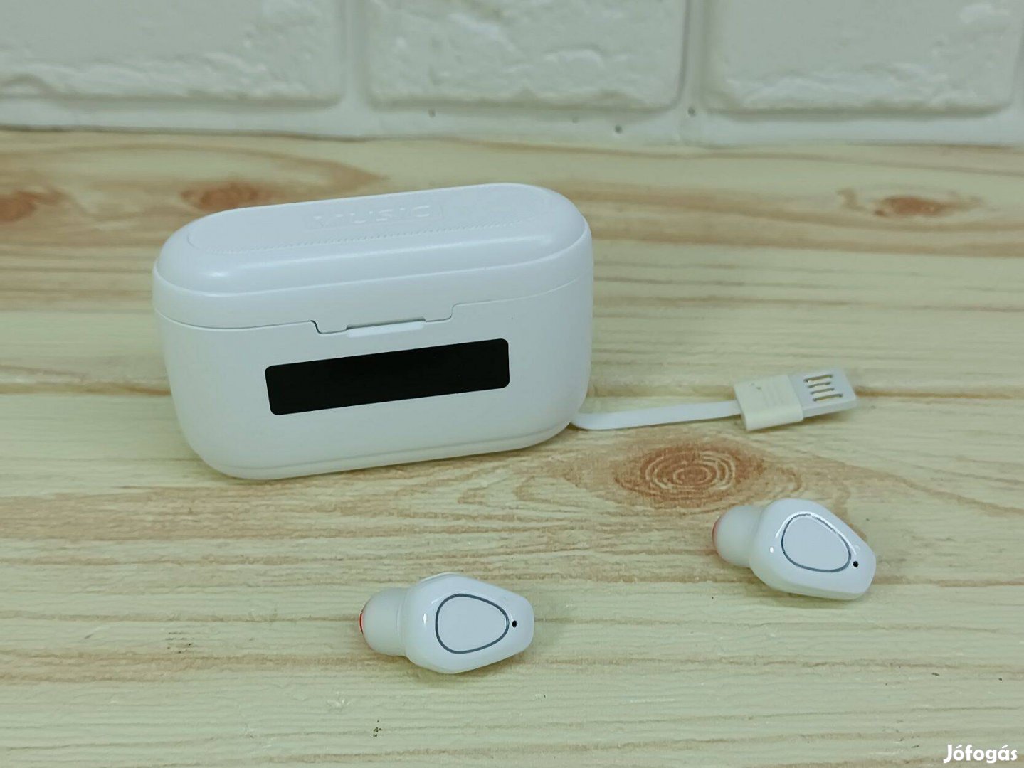 2x vezetéknélküli fülhallgató, (Power bank), LED kijelzős töltő tároló doboz, töltőkábel, 3 pár csere füldugó, használati útmutató.