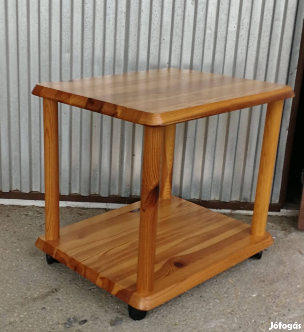 Fenyőfából készült jó állapotban lévő gurulós kis asztalka.