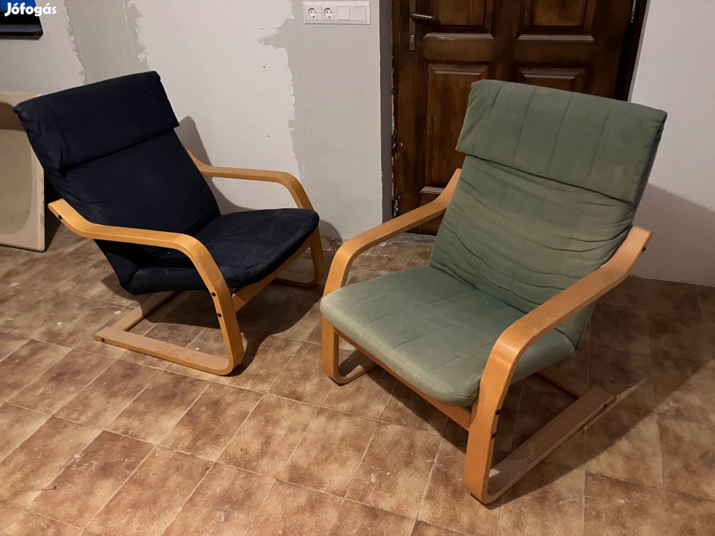 2 db hintaszék, kék és zöld színben.