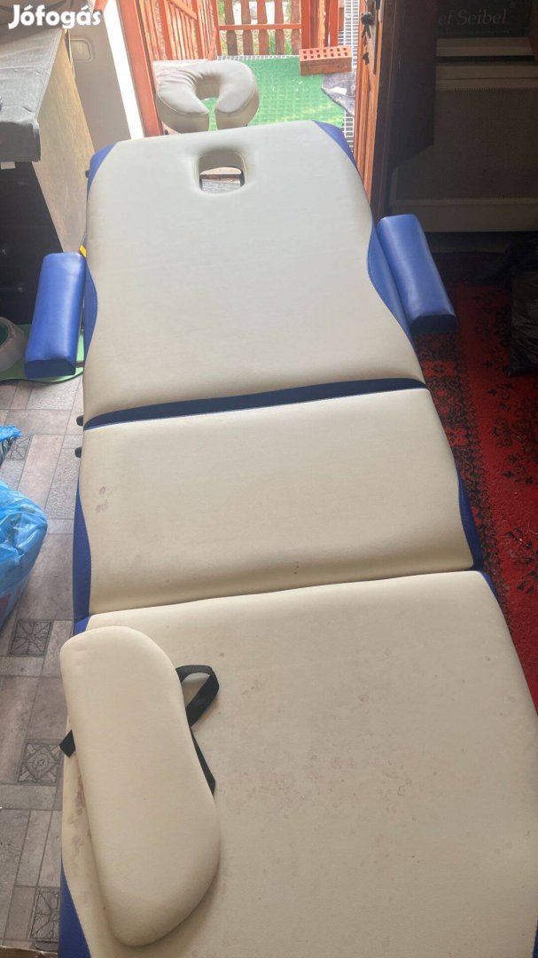 Eladó egy használt hordozható masszáságy, jó állapotban, tartozékokkal, hordozó táskával. Alumínium vázas, könnyű, könnyen összecsukható. Méretei kinyitva kb. 200x70.