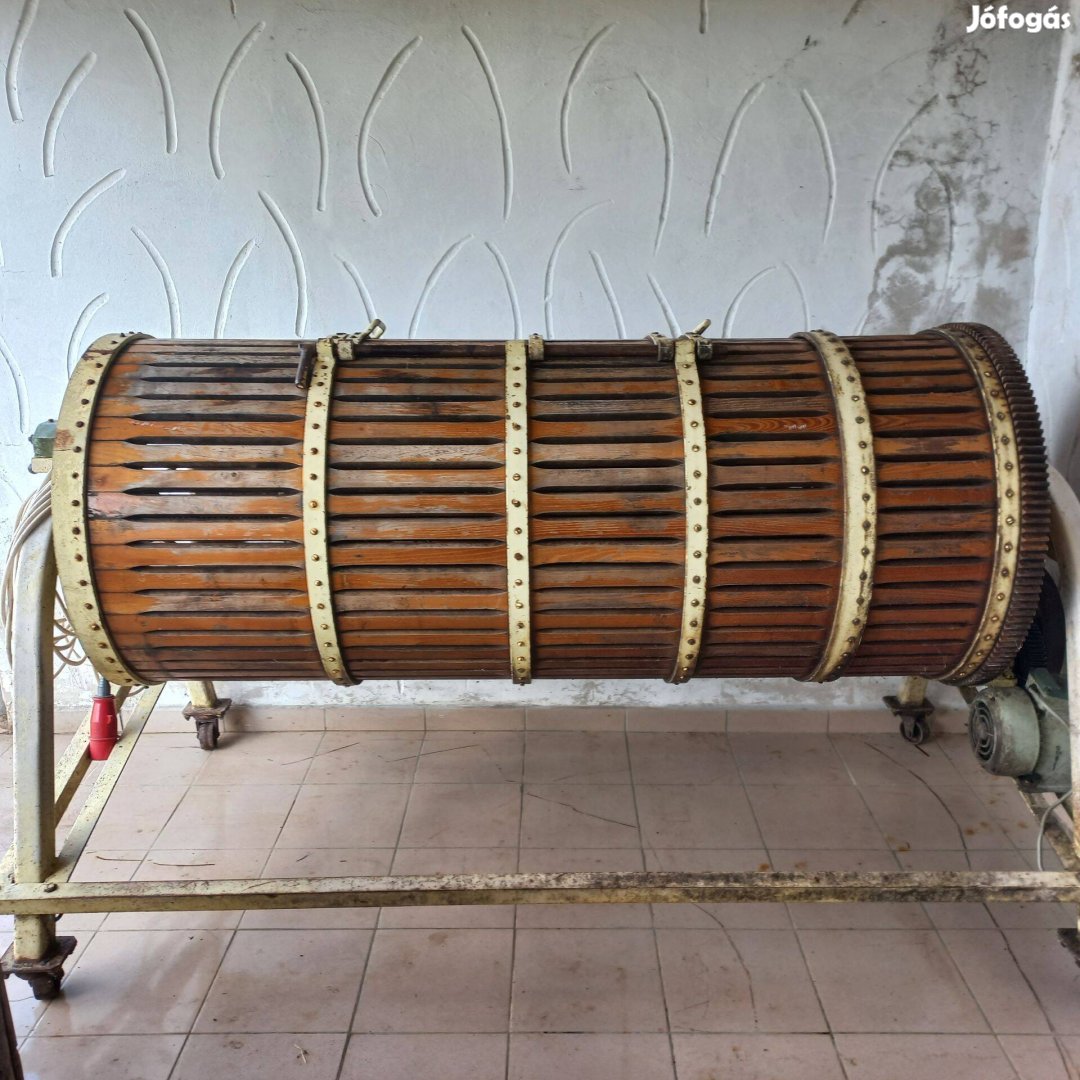 700 literes, fekvőhenger szőlőprés. 1961-ben gyártott, a képeken látható állapotban, még teszi a dolgát! Családi pincészet leépítés miatt vált eladóvá.
