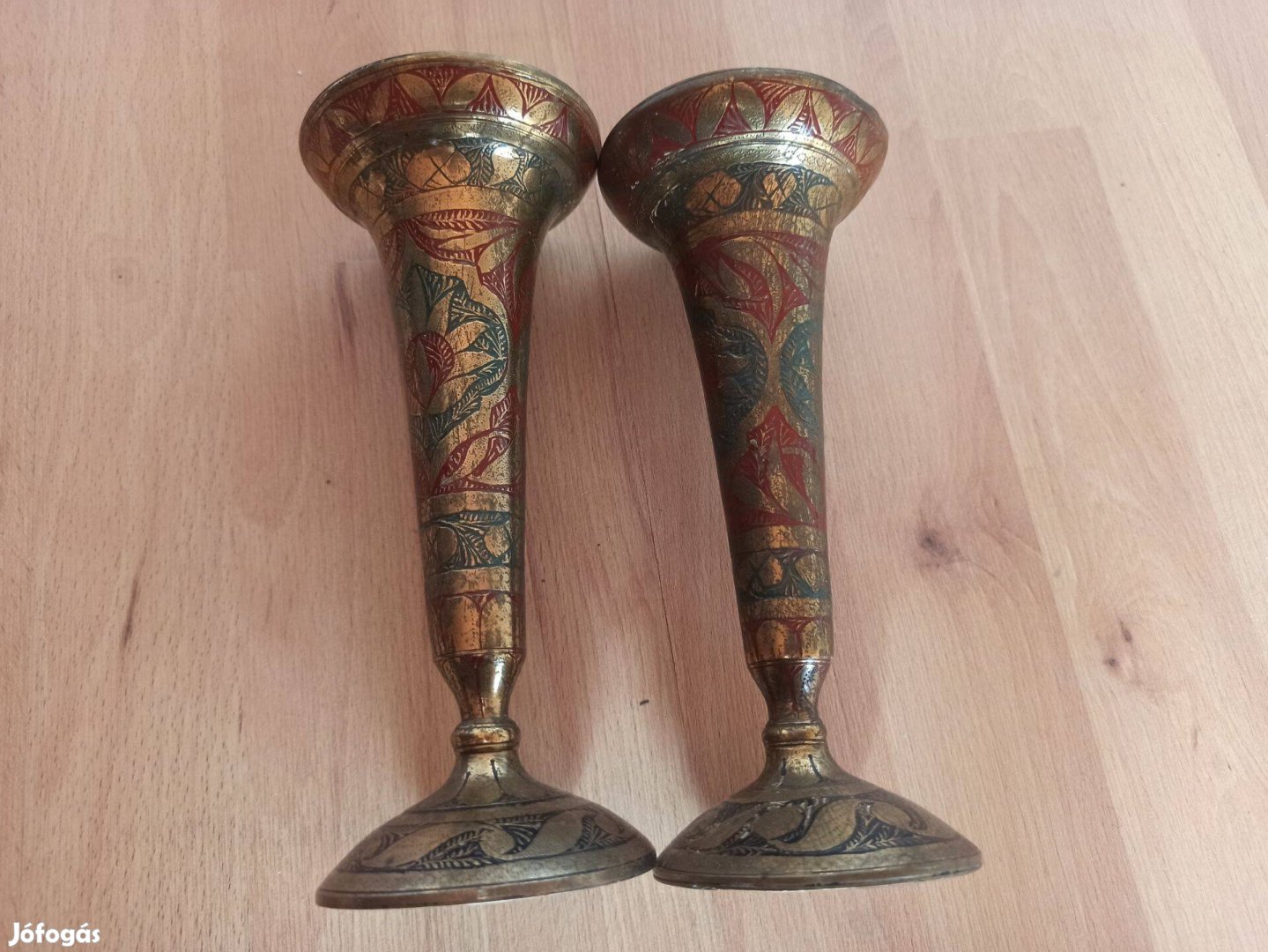 Eladó egy egy pár indiai vésett, festett réz váza.