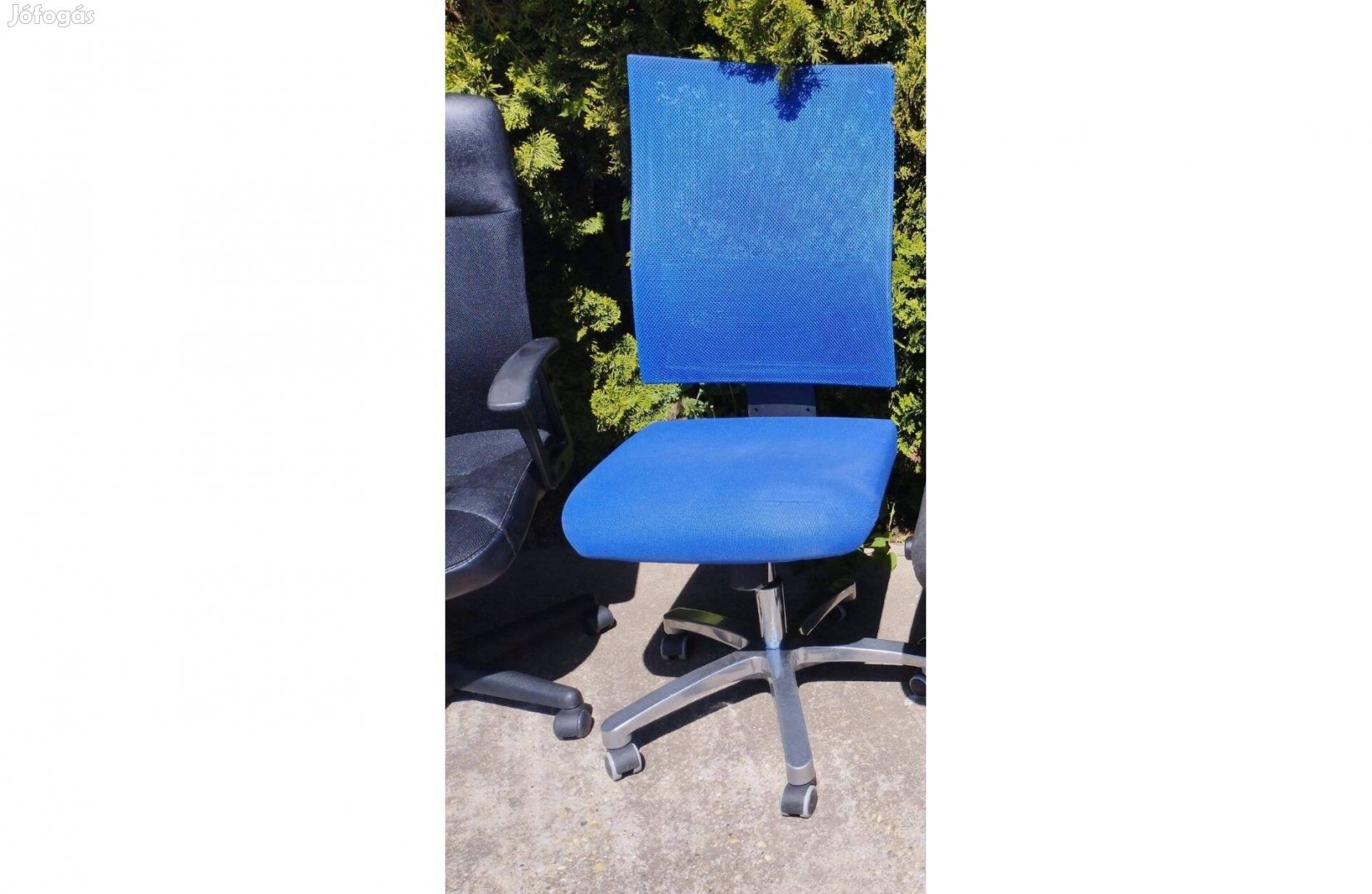 Eladó kék, strapabíró hálós borítású forgószék, állítható magassú élés és támla, erős vázzal.