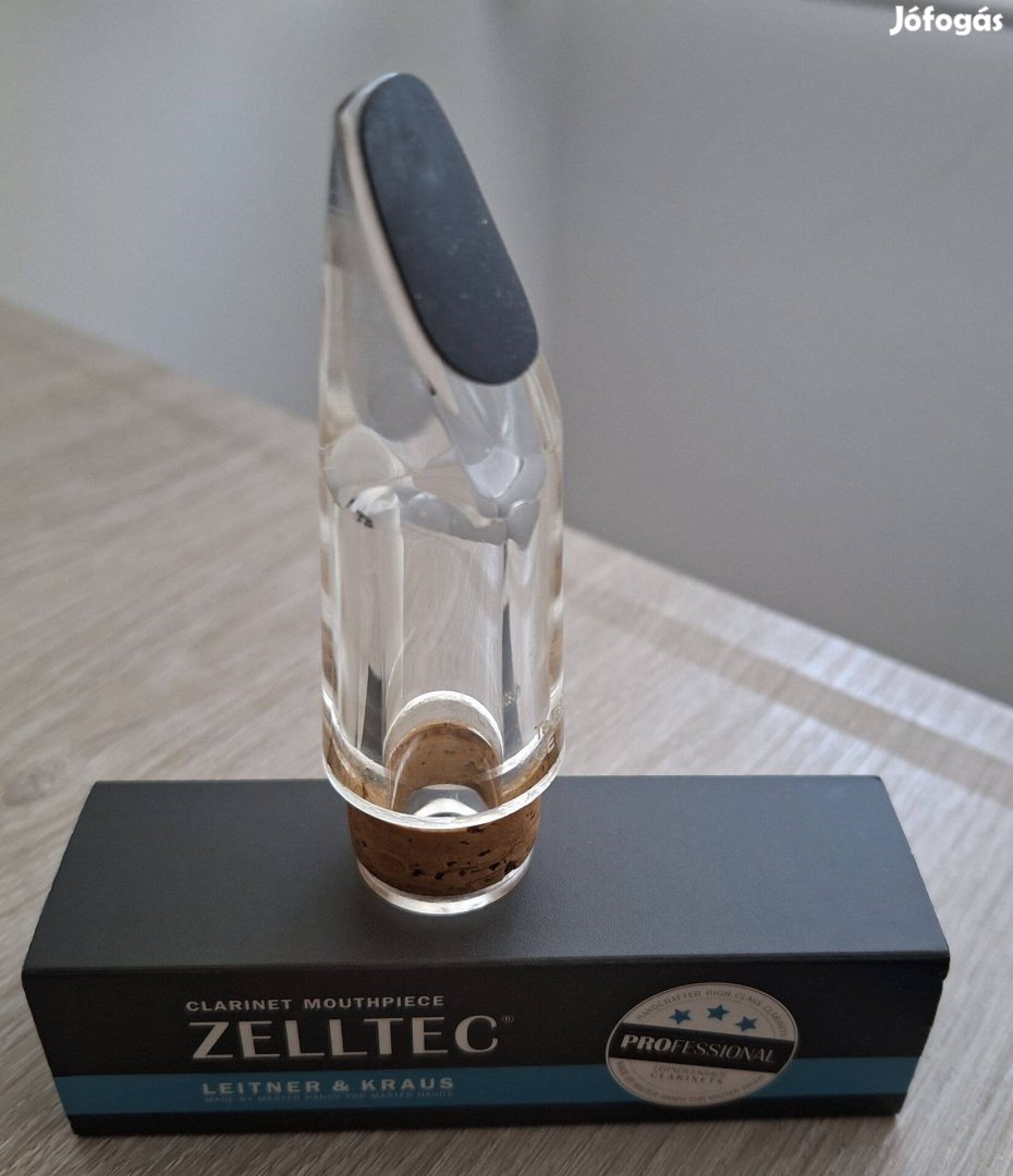 Vadonatúj professional "Zelltec" transparent kristály fúvóka böhm (francia) rendszerü klarinétra a Leitner & Kraus német cégtöl GE jelzéssel.