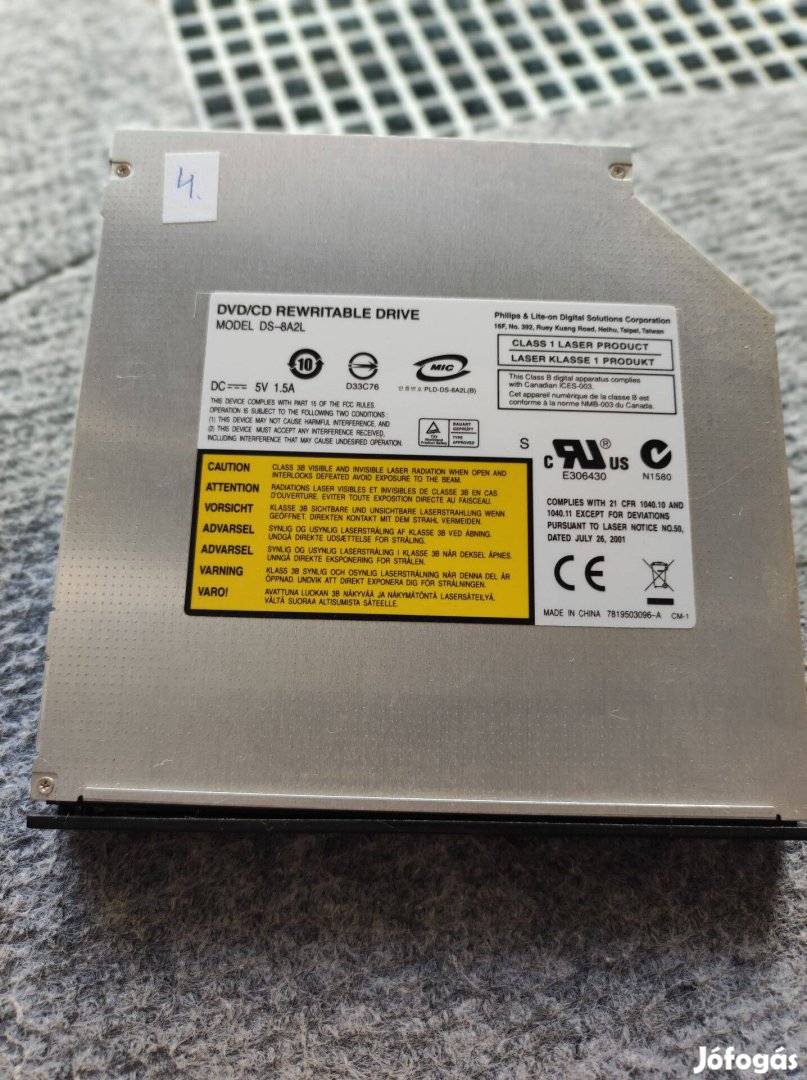 4. Laptopba való Philips DS-8A2L DVDRW SATA Lightscribe optikai meghajtó eladó.