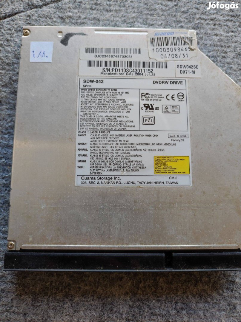 11. Laptopba való Quanta Sdw-042 DVDRW IDE optikai meghajtó eladó.