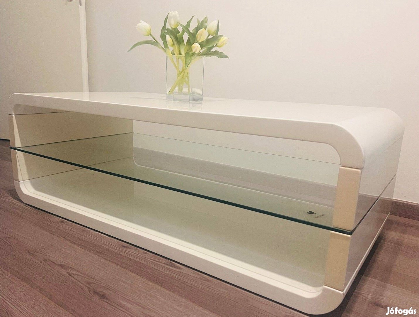 Magasfényű fehér dohányzóasztal