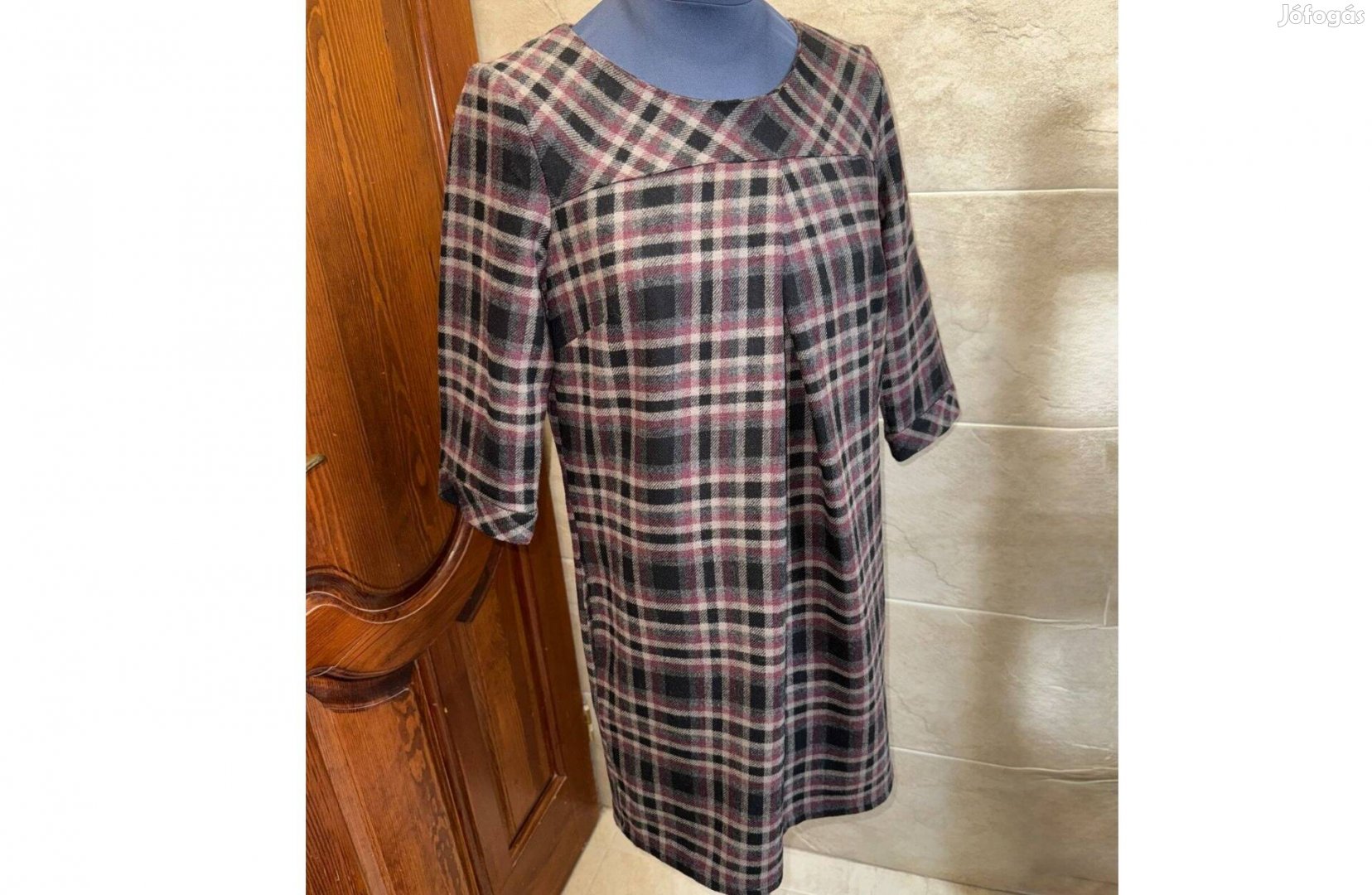 Mango kockás mintájú tunika szürke, fekete és bordó/vörös árnyalatokban. Kerek nyakkivágás, háromnegyedes ujjak és az elején található hajtás jellemzi, ami kényelmes, lazább illeszkedést biztosít. Két oldalzsebe van. Hátulján cipzáras záródású, 45 cm hosszan. Belső címkéjét eltávolítottam. Szabása A-vonalú, stílusa retró hatású. A darab használt, szép állapotú.