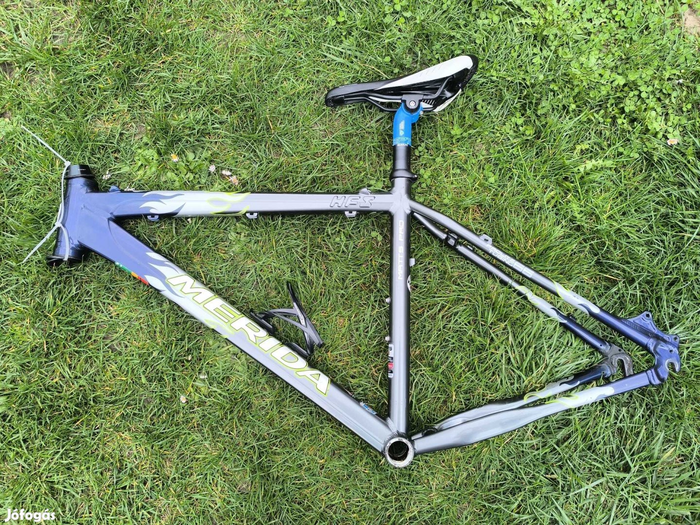 Merida HFS alumínium váz kormánycsapágyakkal, nyeregcsővel,nyereggel. A képeken látható állapotban. Nincs törve, repedve, menetek épek. Vázmagasság: 46cm, felsőcsőhossz: 57 cm, fejcsőhossz: 14 cm. Postázom.