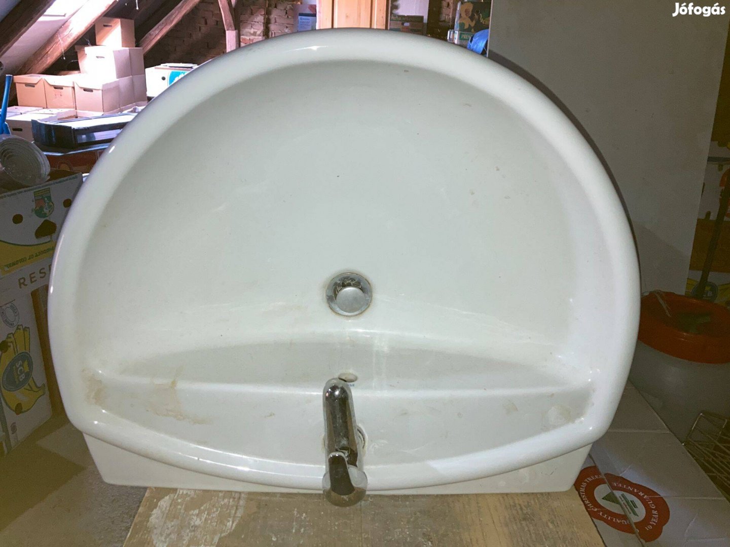 Eladó Roca márkájú kerámia mosdó, szifontakaróval együtt. A takarón egy kicsi lelpattanás van, a fényképen látszik. Csaptelepet is adom hozzá.