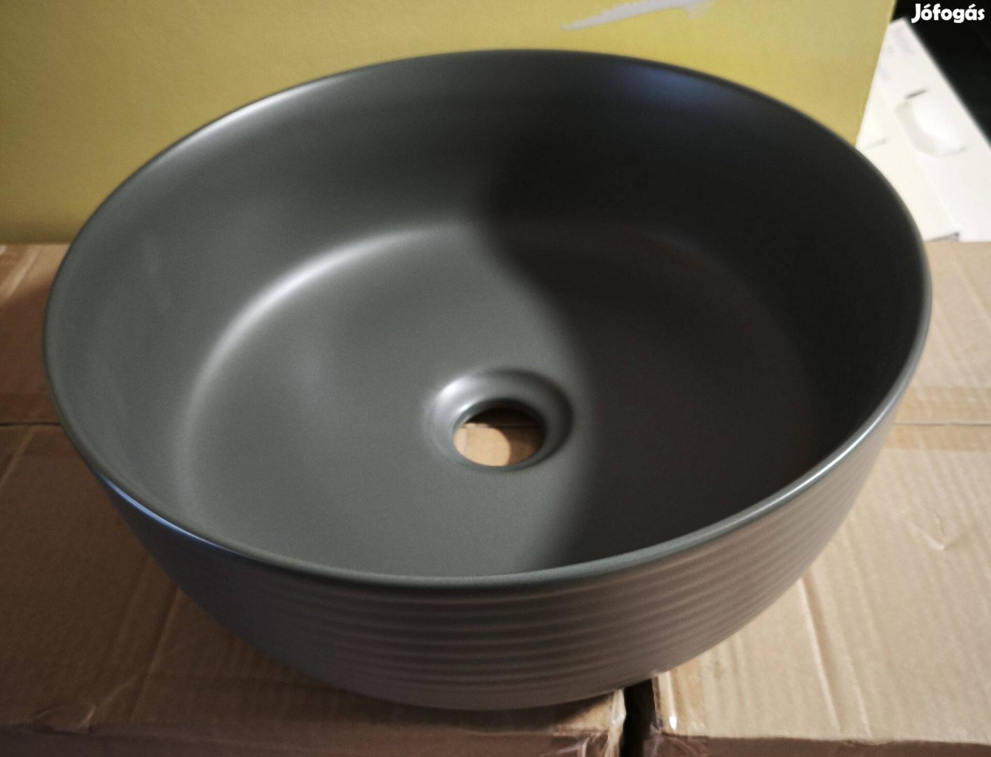 Mosdókagyló, kézmosó, kerek, sötétszürke, matt, bútorra