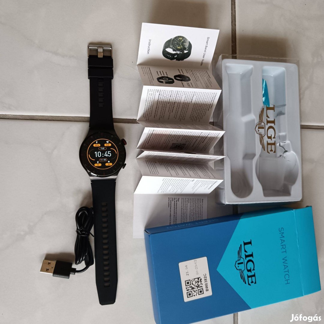 Okos óra ,fémház,új,Androidos, telefon App,valódi gumipánt