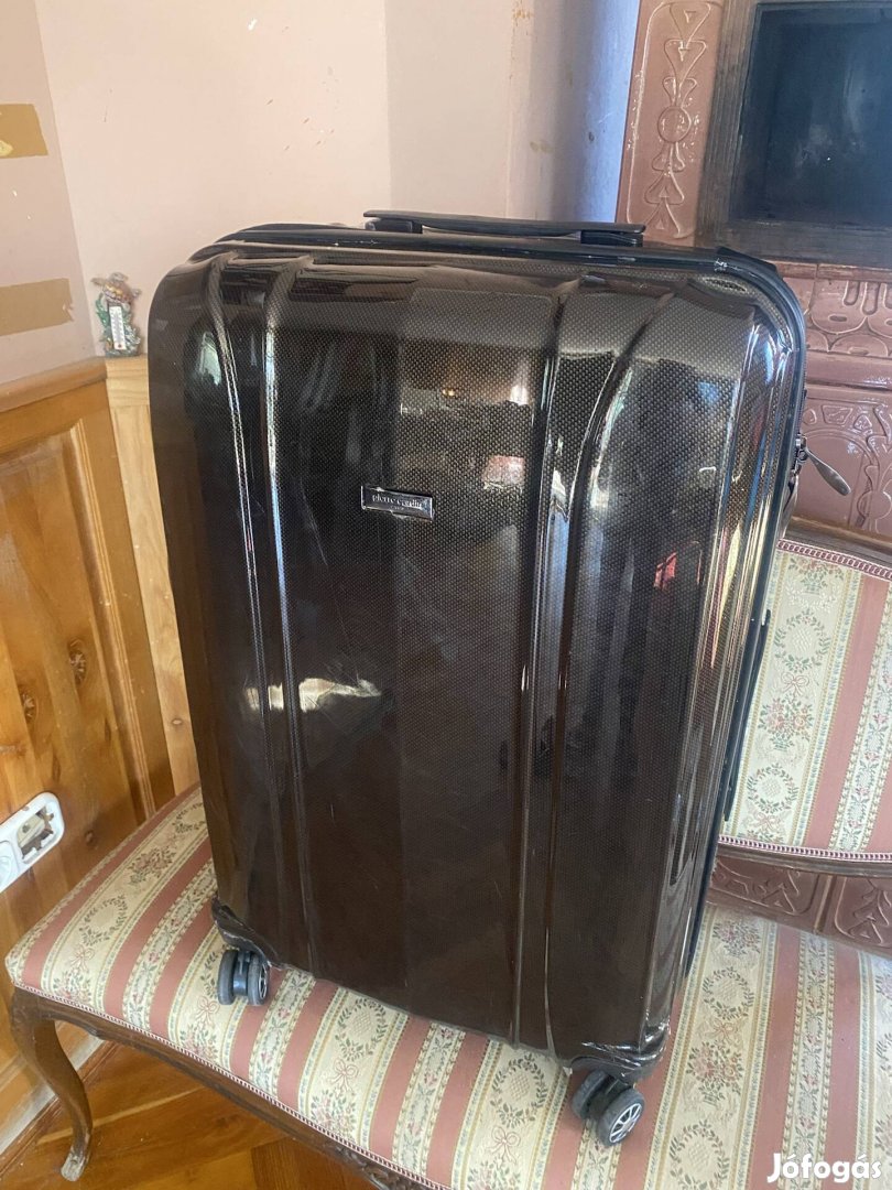 Eladó a képeken látható 1 úton hasznalt Carbon pierre cardin bőrönd , sok helyen még a gyári fólia is rajta van 4 kerekes , méret 72/47/28