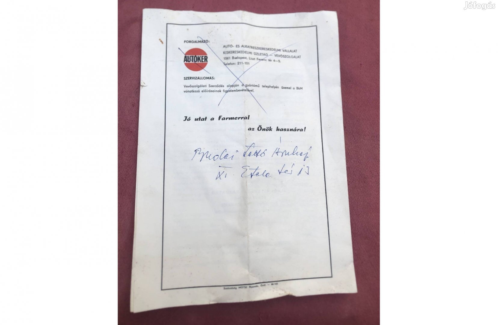 Régi Autoker irat 850 Ft