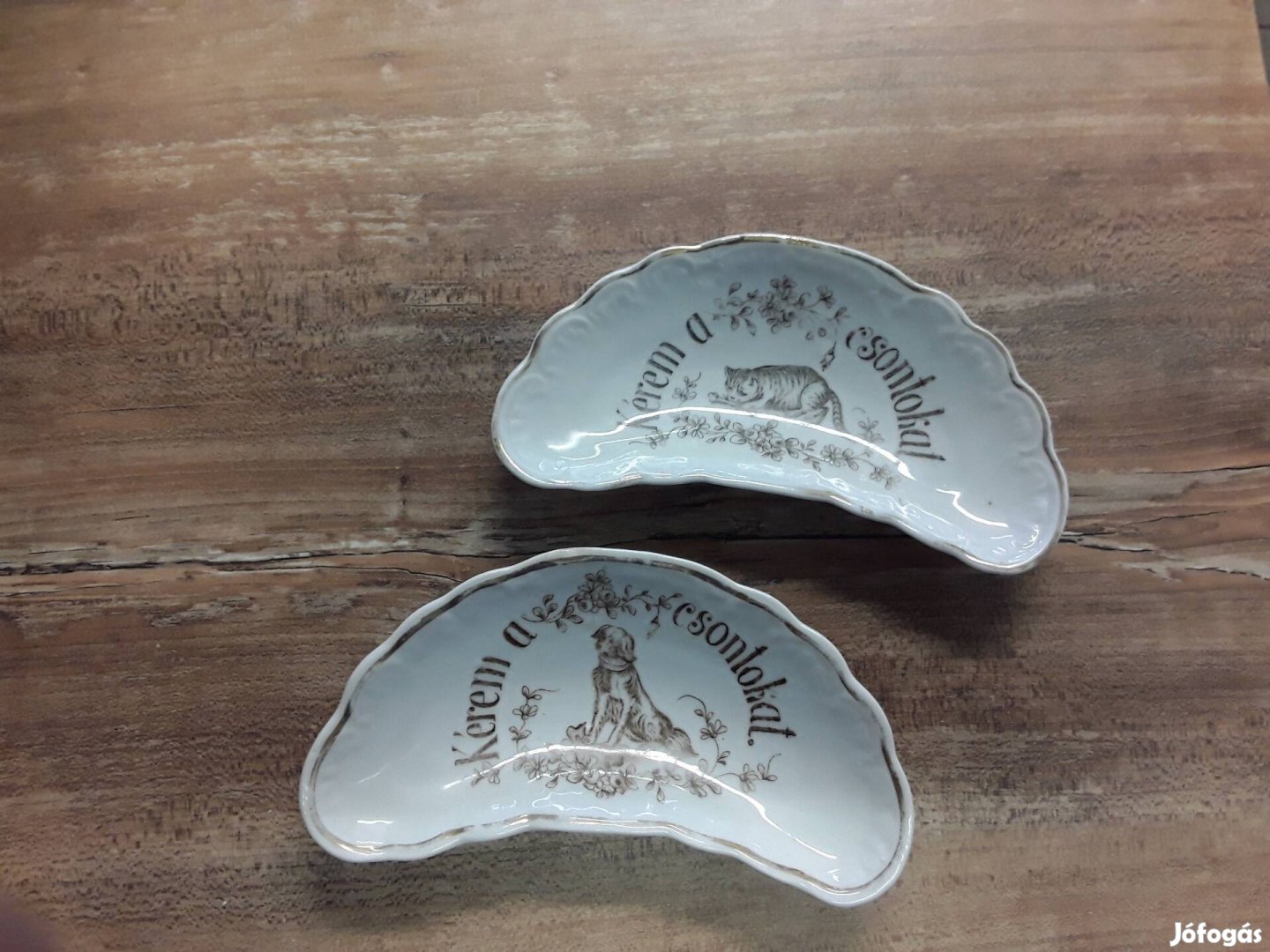Csontos tányérok 1900-1949 évben.Cica,kutya mintásak,feliratosak,arany szegéllyel.5000ft/db.