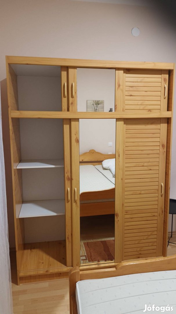 A képen látható ruhásszekrény eladó. Tolóajtós, polcos és akasztós része is van.