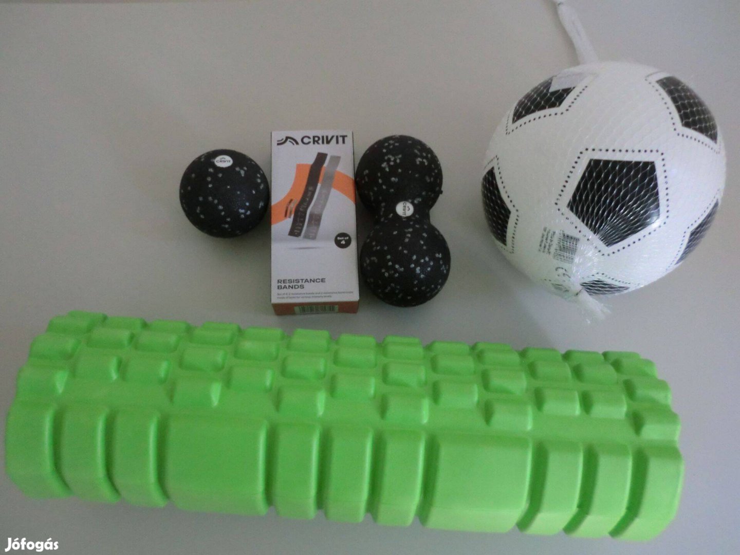 Új SMR henger 45*14cm-es,4-részes fitnesz-szalag,3 fitneszlabda és Crane masszírozó lábtartó eladó egyben,összesen 9900 Ft-ért.