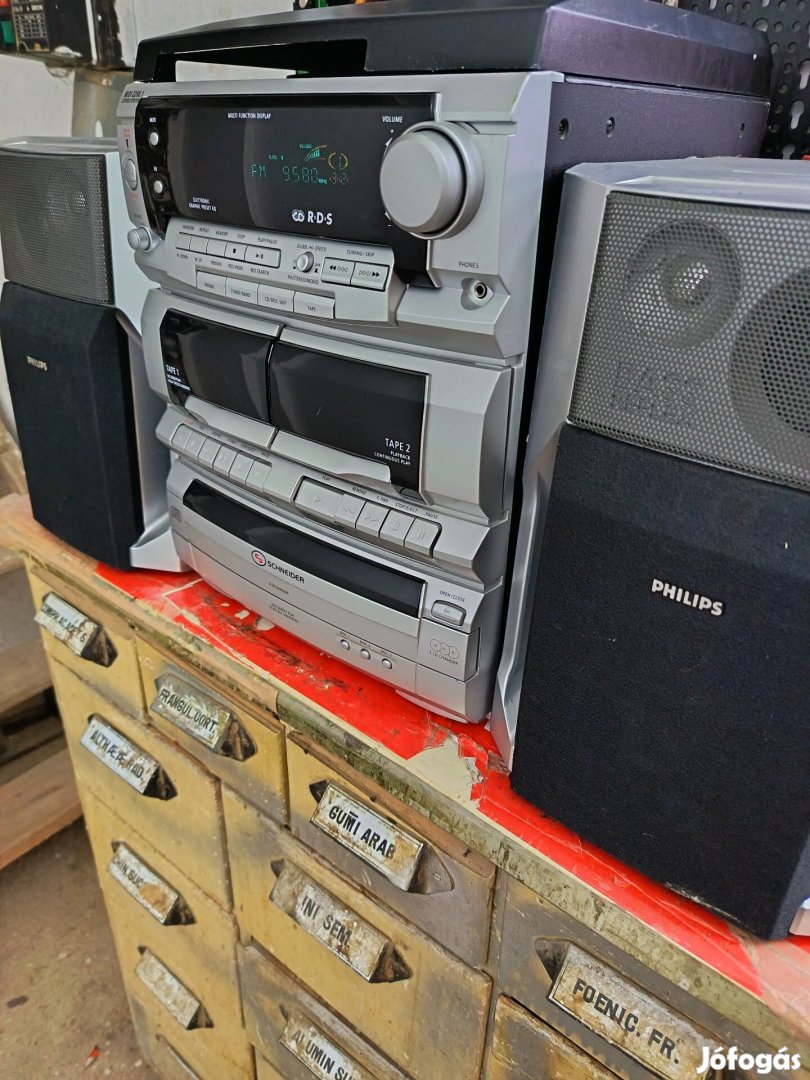 Schneider hifi lejátszó torony, philips hangfalakkal fix áron eladó. A rádió, lemezjátszó, kazettás része működik,a cd rész nem olvas. Esztetikai hibái vannak,de szépen szól! Posta megoldható.