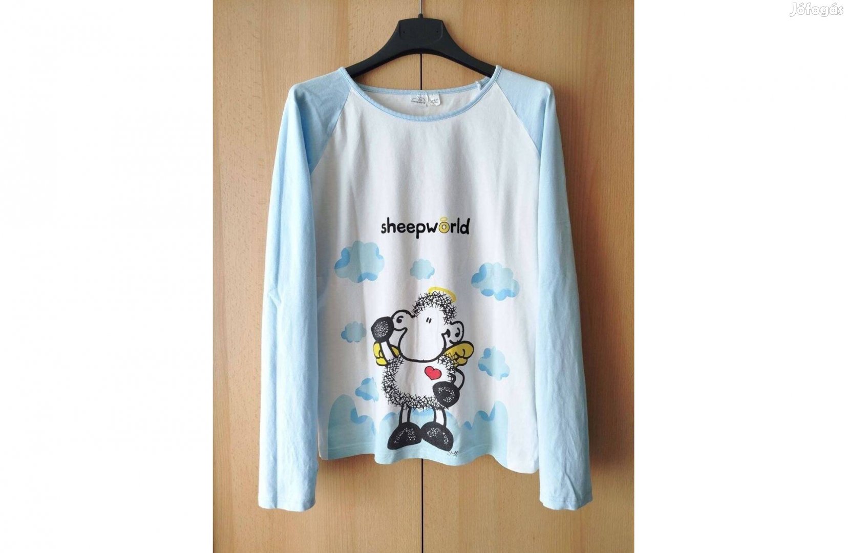 Sheepworld bárányos, világoskék-fehér, hosszú ujjú, női pizsama felső.