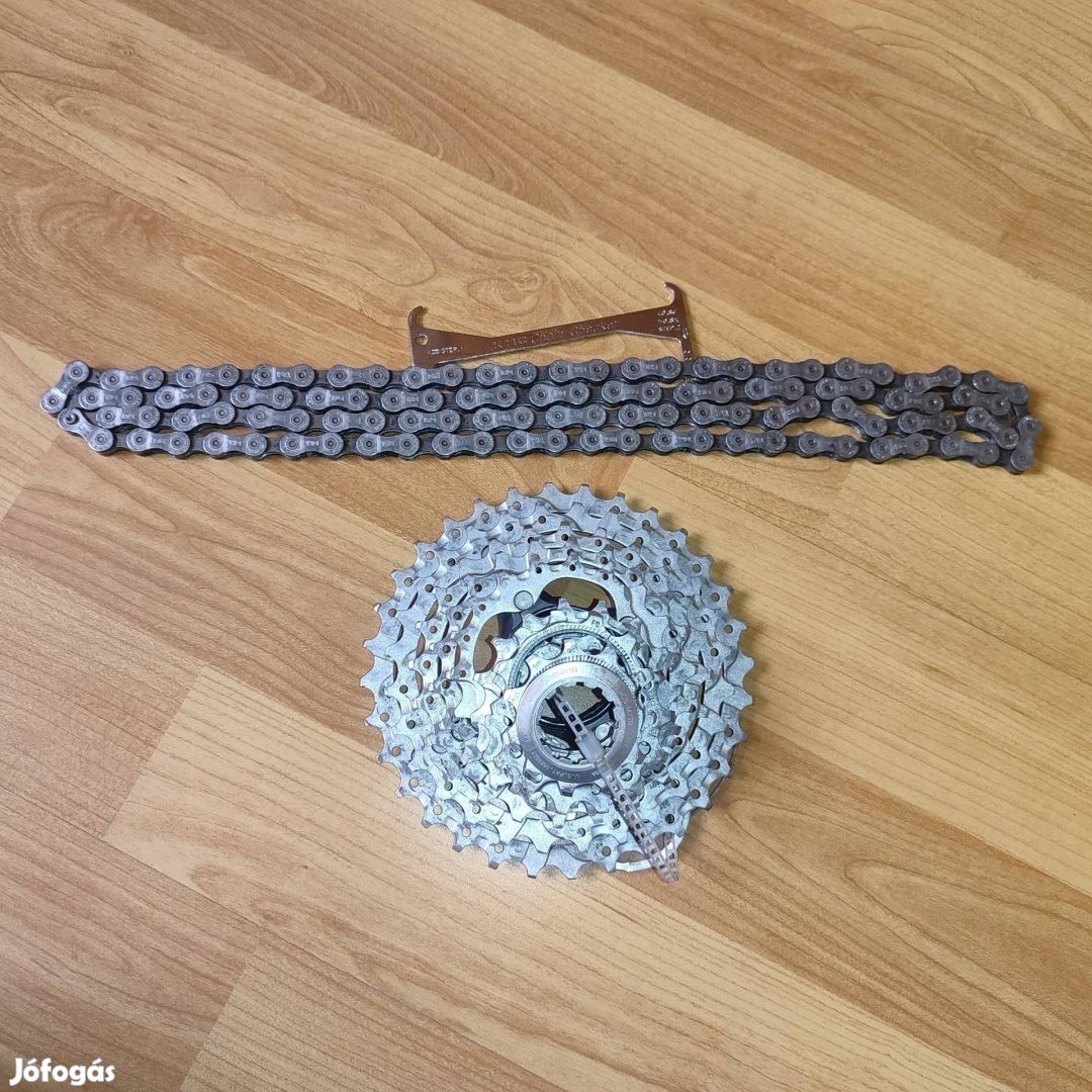 Shimano XT 9-es fogaskoszorú CS-M770,a vele futott XT lánccal CN-HG93 (megnyúlt de még használható) együtt eladó,postázom is.