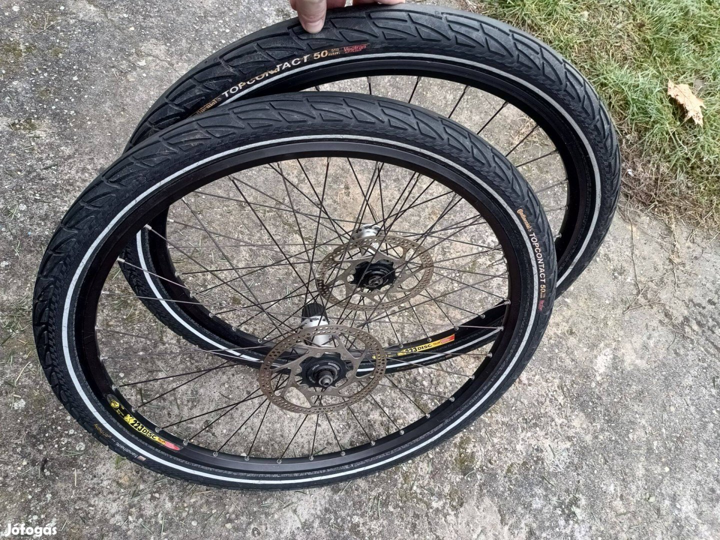 Shimano XT M765 agyak, Mavic 223 duplafalu szegecselt felnik, Shimano 160-as tárcsák, Continental gumik. Agyak, felnik szépen futnak.