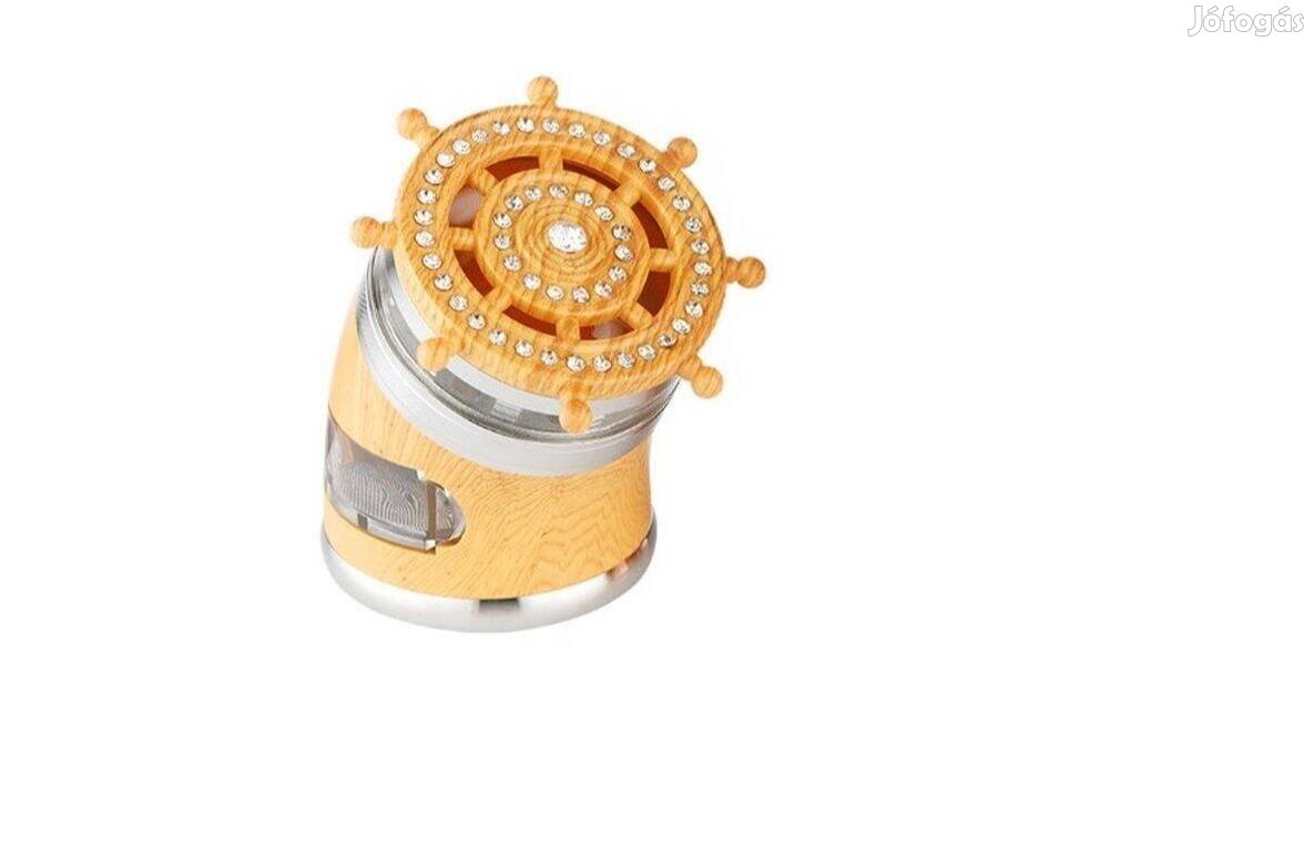 Super Heroes 4 részes dohányőrlő. Világos barna színét ezüst árnyalatú fém sávok díszítik. Igazán különleges formáját a tetején látható hajókormány forma adja, melyet csillogó kövek tesznek még egyedibbé. Ezek a darabok nőknek kifejezetten kedves ajándékok is lehetnek! Segítségével a frissen őrölt dohány és gyógynövény aromáját élvezheti saját készítésű cigarettájában.