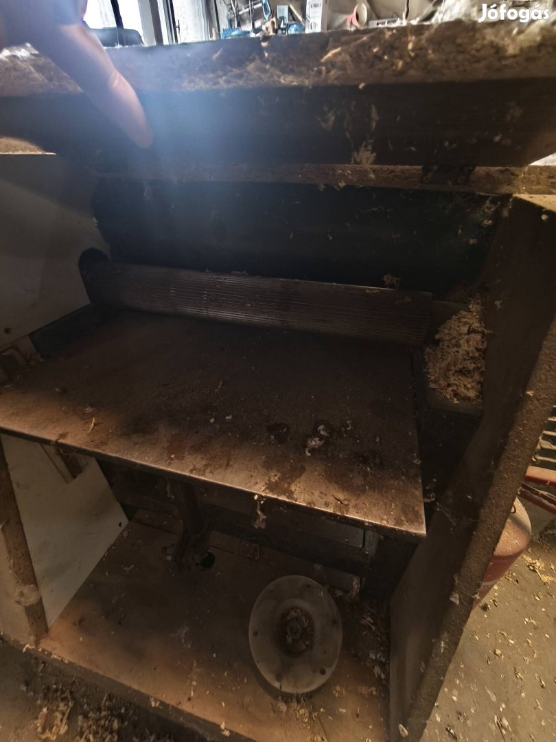600-as szallagfűrész, 300-as egyengetö gyalu hosszlyuk fúróval,600-as vastagsági gyalú, egyben eladó! 340.000-ft