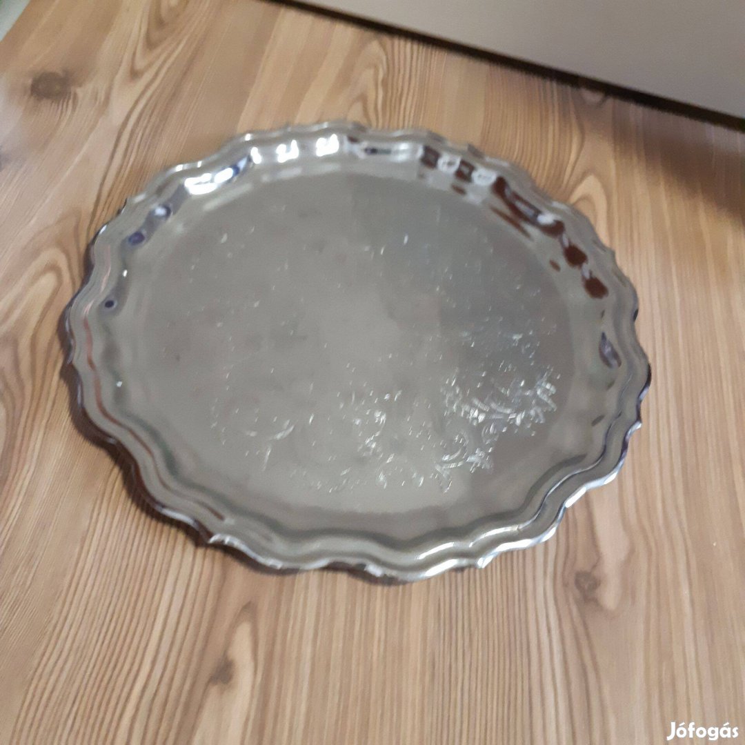Eladó a képen látható Szép, mintás ezüstözött tálca. 36.5cm átmérőjű
