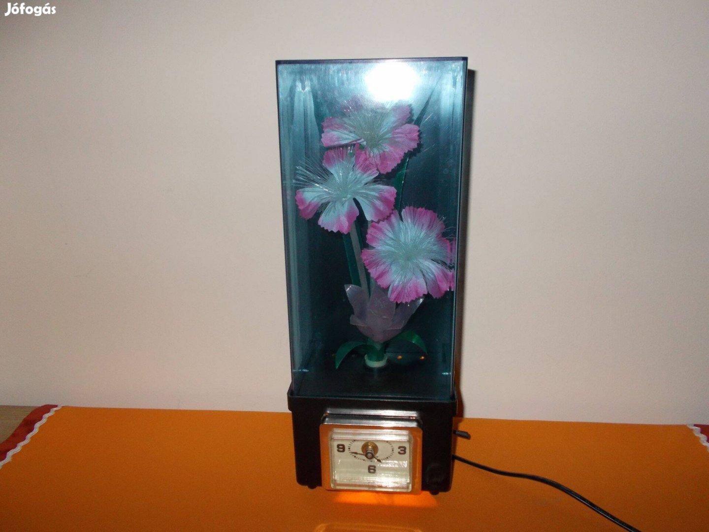 220 v-os üvegszál optikás dísz asztali lámpa, elemes órával eladó.