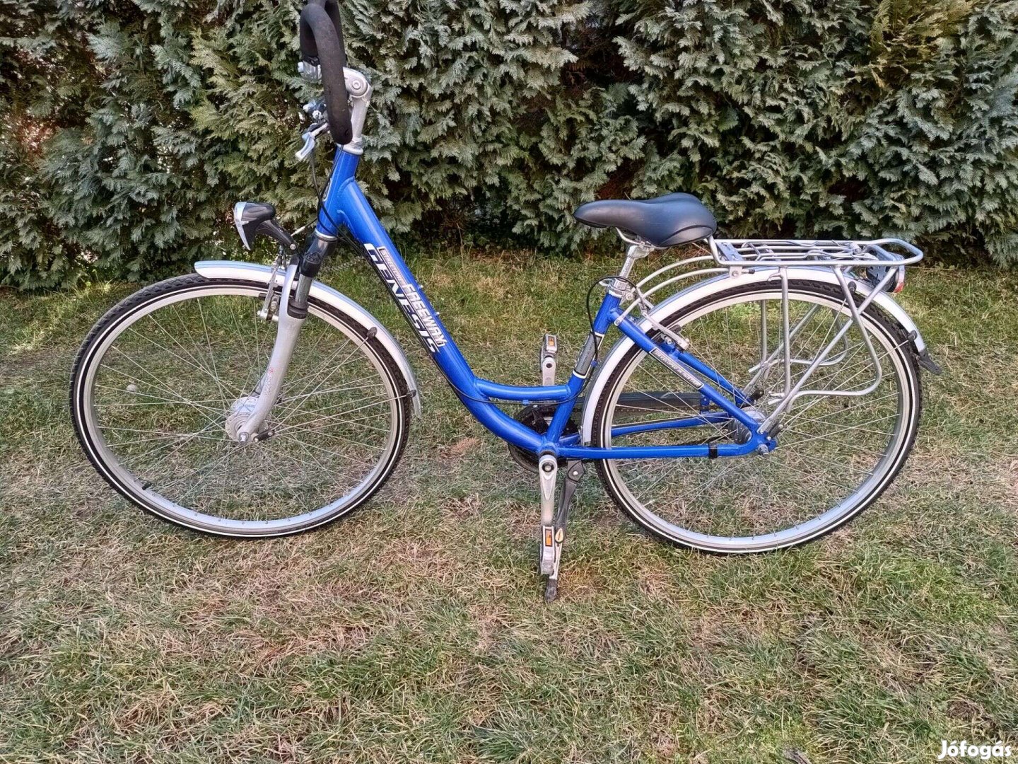 Újszerű Genesis női kerékpár, ami szinte nem is volt használt. A kormány szivacsán van néhány kisebb sérülés. A kerékpár szép állapotú, a gumik is újszerűek. 7 sebességes Shimano agyváltó, első teleszkóp, rugós nyeregcső, fényérzékelős világítás Shimano agydinamóval.