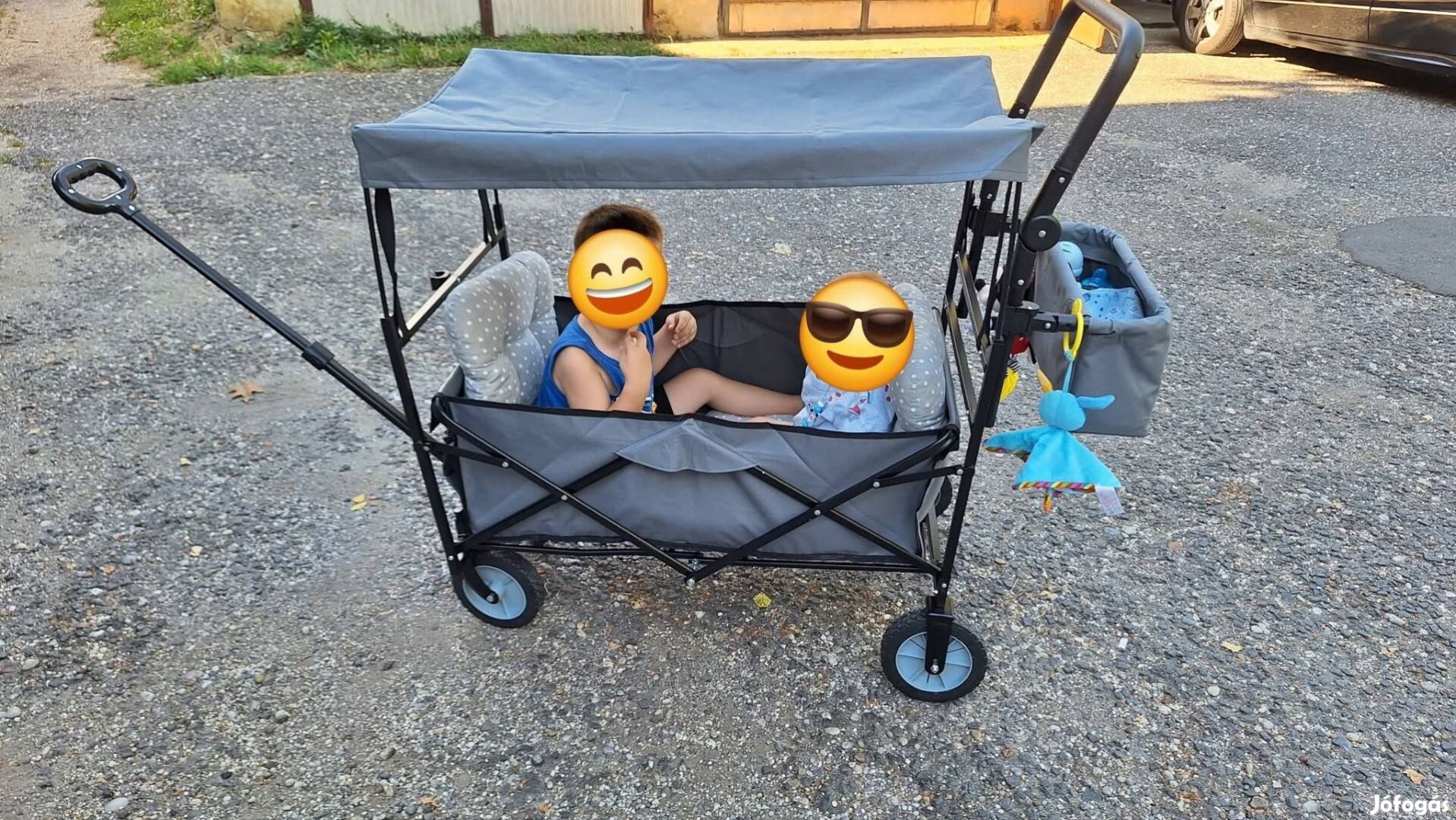 Eladó 2x használt, újszerű húzó és toló strandkocsi napfénytetővel