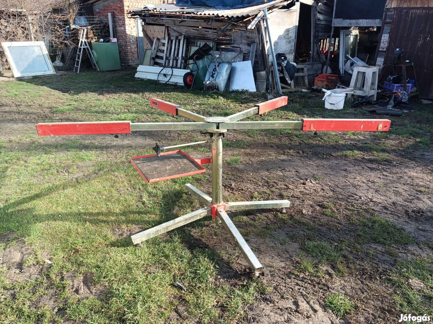 Jó állapotú állvány,sok féle felhasználási területtel.Stabil,nagy teherbirású,forgatható,kihuzható karok.2db ra suedhető.254cm a karok hossza,maximális állásba.Postán maradó szállítás megoldható.számlával