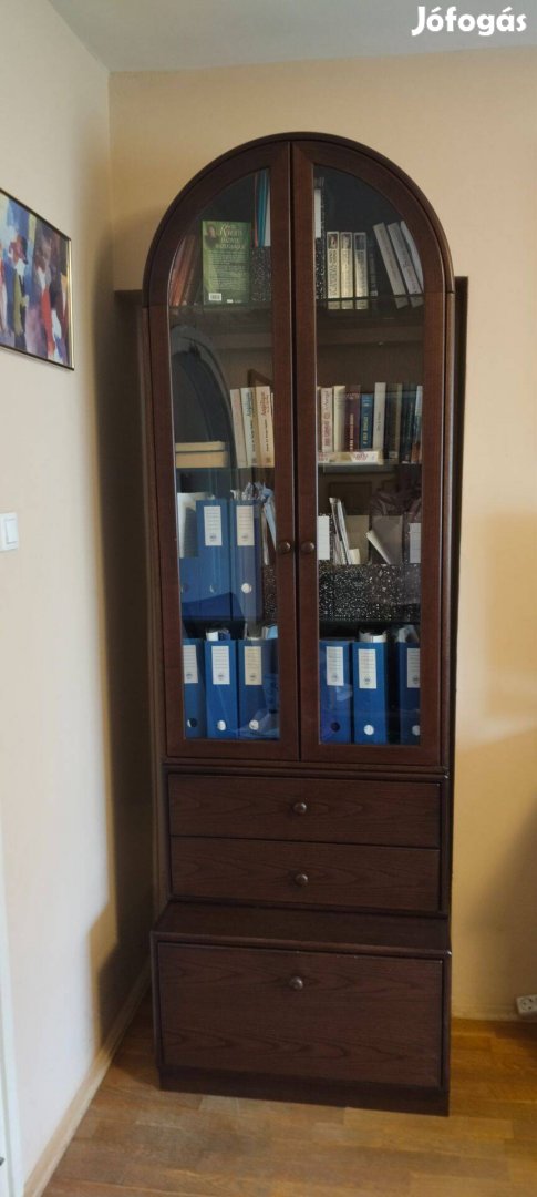 Költözés miatt eladó egy üveges vitrin. Alul fiókos, felül üvegajtós, két részre szedhető.