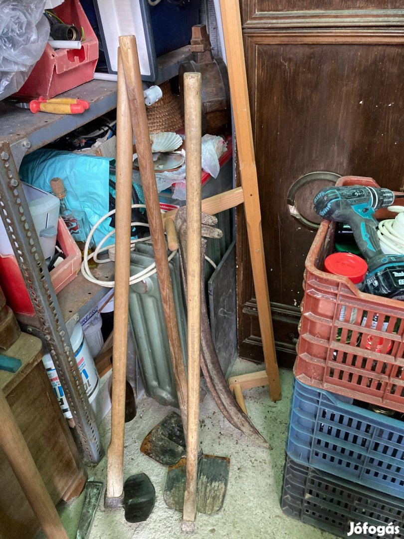 Eladó egy újonnan vásárolt, de nem összeállított kézi kasza fa nyele, plusz két használt él hozzá, plusz grátiszban kapák.
